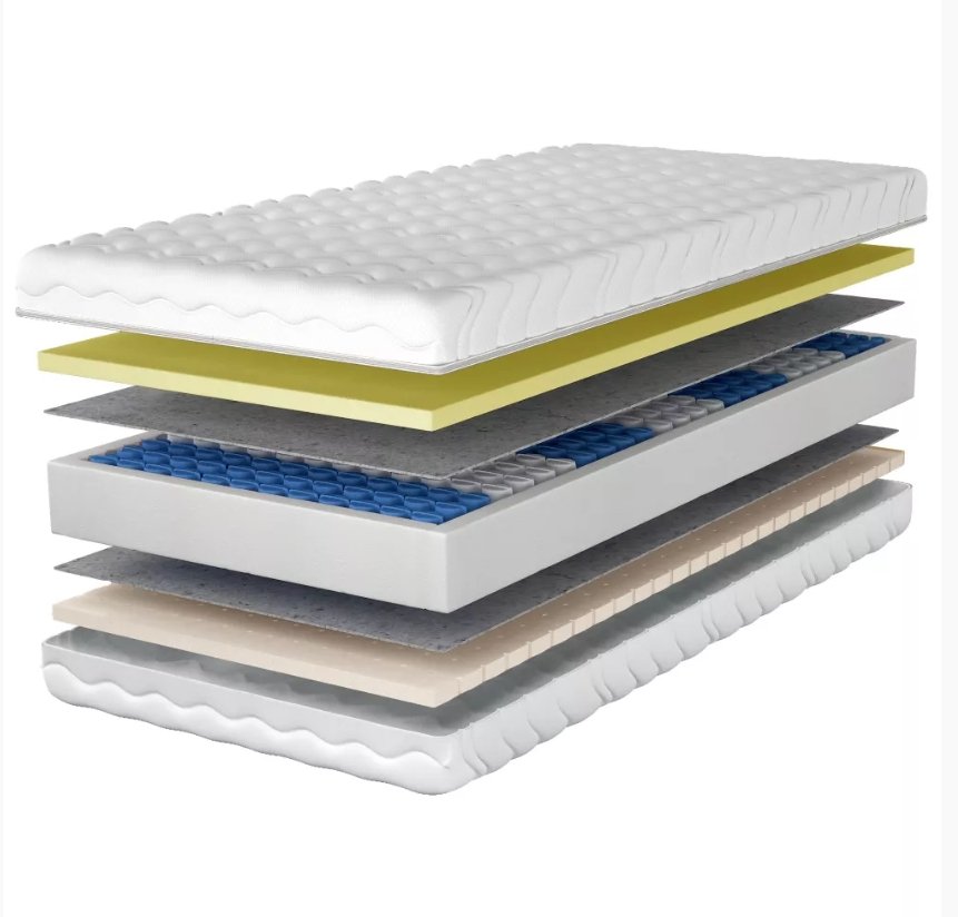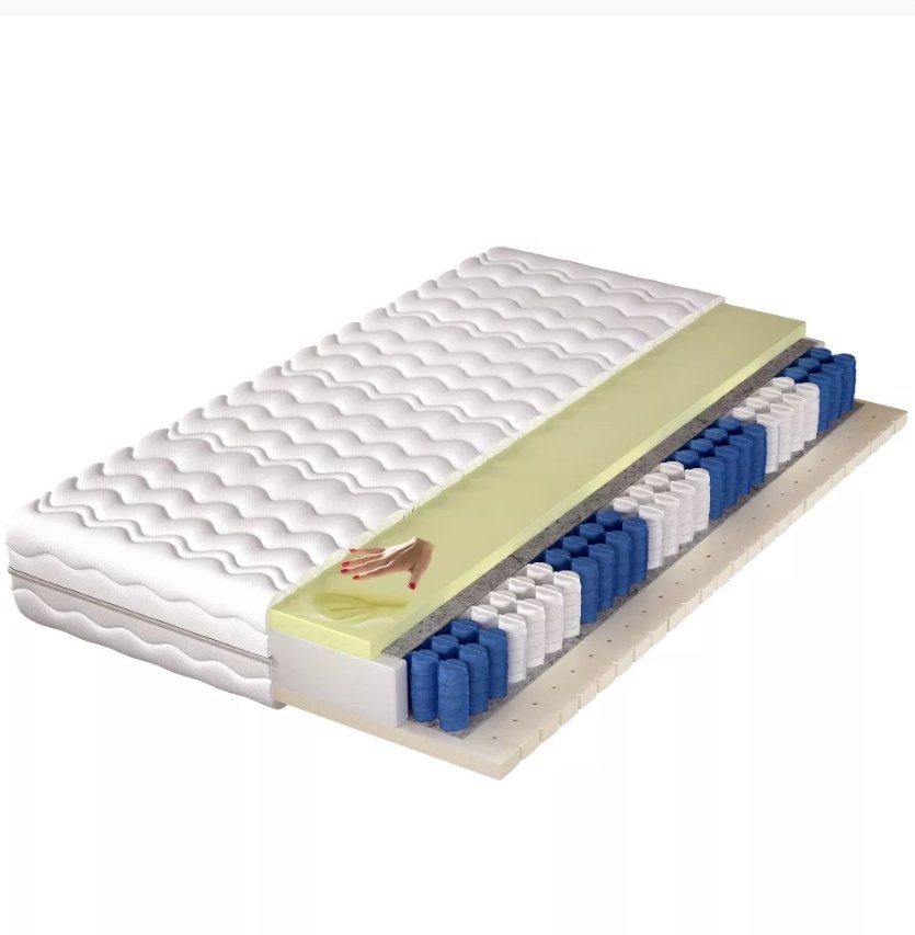 Materac Alaska to wygodny materac sprężynowy oparty na systemie sprężyn pocket z 7 strefami twardości, który dopasowuje się do naturalnych krzywizn ciała i zapewnia stabilne podparcie podczas snu.