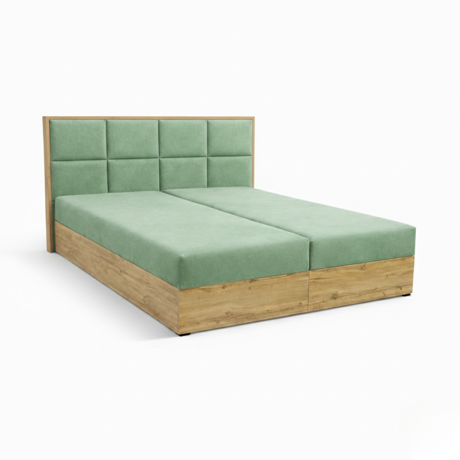 Łóżko zostało wyposażone w materac bonellowy, który zapewnia odpowiednią sprężystość oraz stabilne podparcie dla całego ciała. Konstrukcja materaca wspiera prawidłowe ułożenie kręgosłupa i zapewnia komfortowy, regenerujący sen.