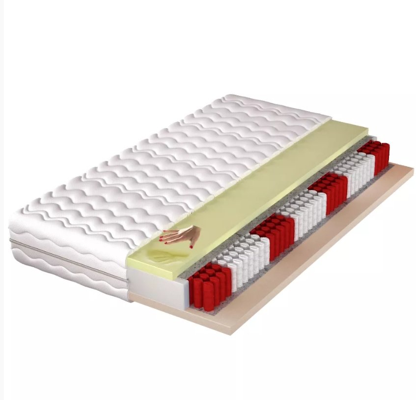 Materac Alabama to wygodny materac sprężynowy oparty na systemie sprężyn pocket z 7 strefami twardości, który dopasowuje się do naturalnych krzywizn ciała i zapewnia stabilne podparcie podczas snu.