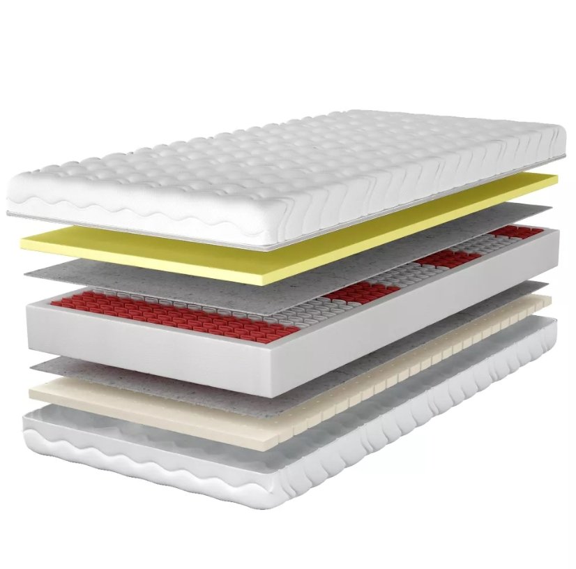 Dwustronna konstrukcja materaca zapewnia wysoki komfort dzięki zastosowaniu dwóch różnych warstw: