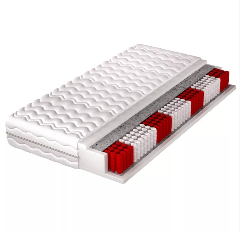 Materac Teksas to komfortowy materac sprężynowy oparty na systemie multipocket z 7 strefami twardości, który dopasowuje się do naturalnych krzywizn ciała i zapewnia odpowiednie podparcie dla kręgosłupa podczas snu. Dzięki wysokiej gęstości sprężyn (506 sprężyn na m²) materac dobrze reaguje na nacisk i ogranicza przenoszenie drgań.